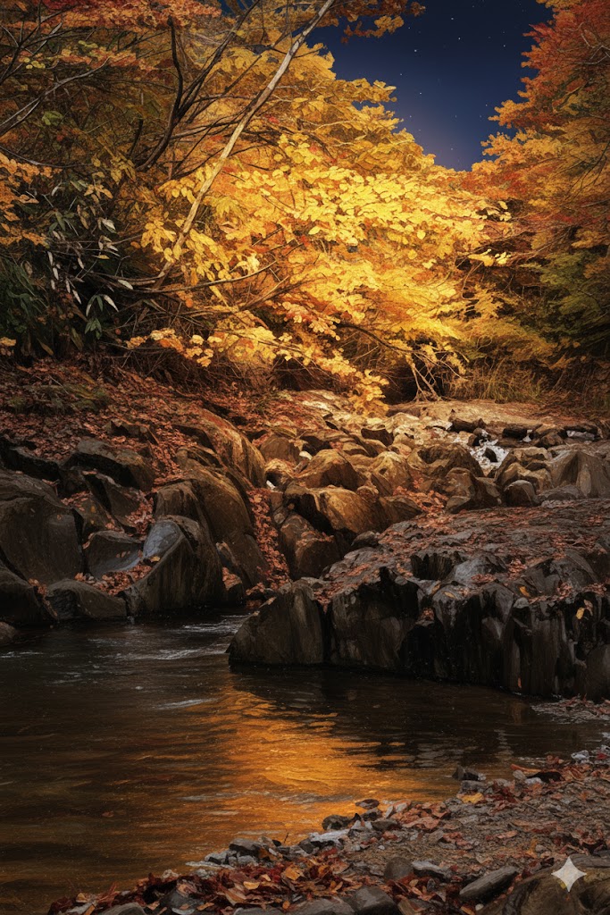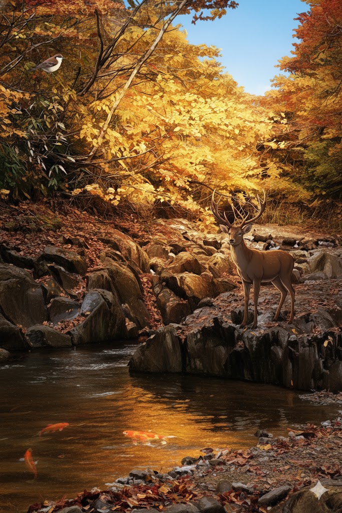 例えばこの紅葉と川の写真をAIにお願いするとこのような風に変えることも出来ます。