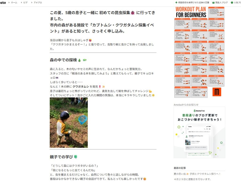 ブログでは例えばアメブロというサイトを使えば下の写真の様に文章付きで思い出を記録することが出来ます。