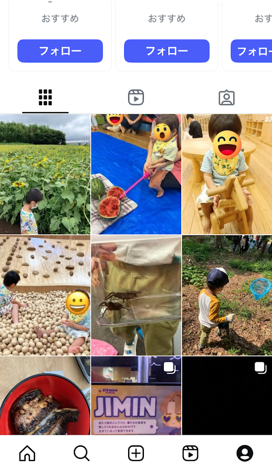 また、インスタグラムは下の写真の様に複数の写真をまとめて記録できます。