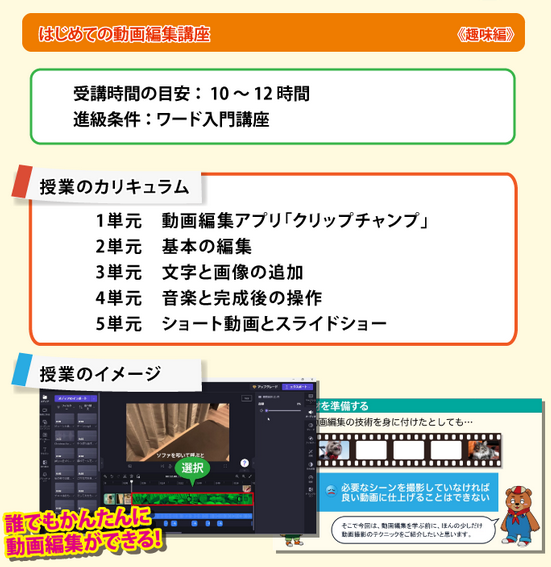 実は、教室では「はじめての動画編集入門」という講座を用意しています。