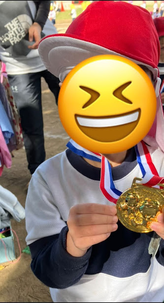 運動会閉会式後の金メダルの撮影も忘れていません。