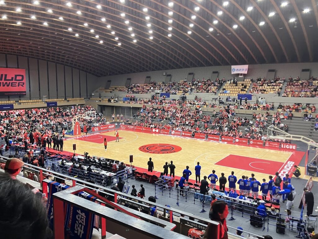 息子にとっては人生初のバスケットボール観戦。