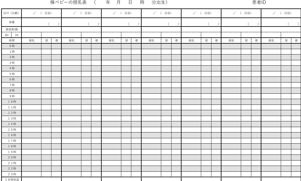 罫線や日付の記入欄を作り、授乳、尿、便の記録ができる表を作成して、データを妹に渡しました。